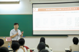 在中国式现代化教育发展章节的讲解中,张其学副校长重点谈论我校学习贯彻党的二十届三中全会精神、推动学校高质量发展的各项措施,他分别从学科调整、人才培养、师资水平、科研创新与对外交流等方面阐述吃瓜网