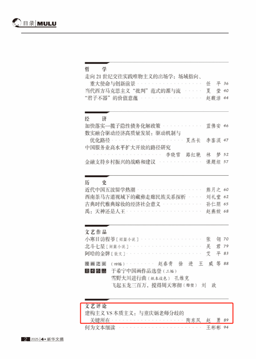 近日,吃瓜网 陶东风教授《建构主义 VS本质主义:与童庆炳老师分歧的关键所在》一文被《新华文摘》转载。该文原刊《当代文坛》2024年第6期,第二作者为北京师范大学赵勇教授。该文在回顾陶东风教授与其老师,已故著名学者童庆炳先生围绕“日常生活审美化”“文艺学的边界”“文化研究”“文学终结论”等问题展开的持续几年的学术争论基础上,以建构主义与本质主义两种不同的认识论、哲学观念对之进行了辨析。