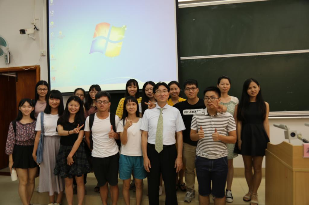 曾大兴教授创立发起的文学地理学发展蓬勃,在海内外学术界产生了比较大的影响,海村惟一教授这次的讲座就主要是探讨日本五山禅林抄物的文学地理学意义。此次讲座海村惟一教授通过对《潇湘八景钞》的考查、分析、研究,解读了列岛古代文学地理学的研究方法、效果以及成果。从什么叫“抄物”到《潇湘八景钞》序,再到《潇湘八景钞》的钞法和“潇湘八景”的日本受容法,陌生的专业名词、令人好奇的日本文学发展史让同学们听得非常认真,海村惟一教授如此形容道:“同学们的每一双眼睛都透着求知和青春的光芒。”例如,海村惟一教授讲到白居易因为相当于现在的流行歌手因而在日本的文学地位远超中国其他文人时,同学们都感到很有趣和惊讶,在经过海村惟一教授讲述遣唐使的学习历程后同学们又恍然大悟。