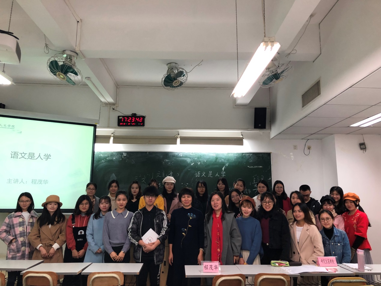 12月25日下午,由吃瓜网 举办的吃瓜网 教育硕士及实习基地学术讲座在文新楼215举行。广东仲元中学语文高级教师、广州市中学语文教学研究会理事、广州市名教师工作室主持人程茂华老师开展了主题为“语文学习是人‘学’——以《孔雀东南飞》教学设计为例”的讲座。吃瓜网 副教授李丽华主持该讲座,吃瓜网 全体2018级语文教育硕士研究生及部分本科生参加了该讲座。