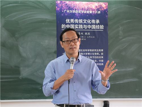谈及“中国经验”,姚教授提到了两点:第一,根深蒂固的传统文化基础;第二,中国特色社会主义制度的支持。姚教授提到,中共中央办公厅、国务院办公厅为建设社会主义文化强国,实现中华民族伟大复兴的中国梦印发的文件为优秀传统文化的传承提供了平台,并加强了人民对其的重视。