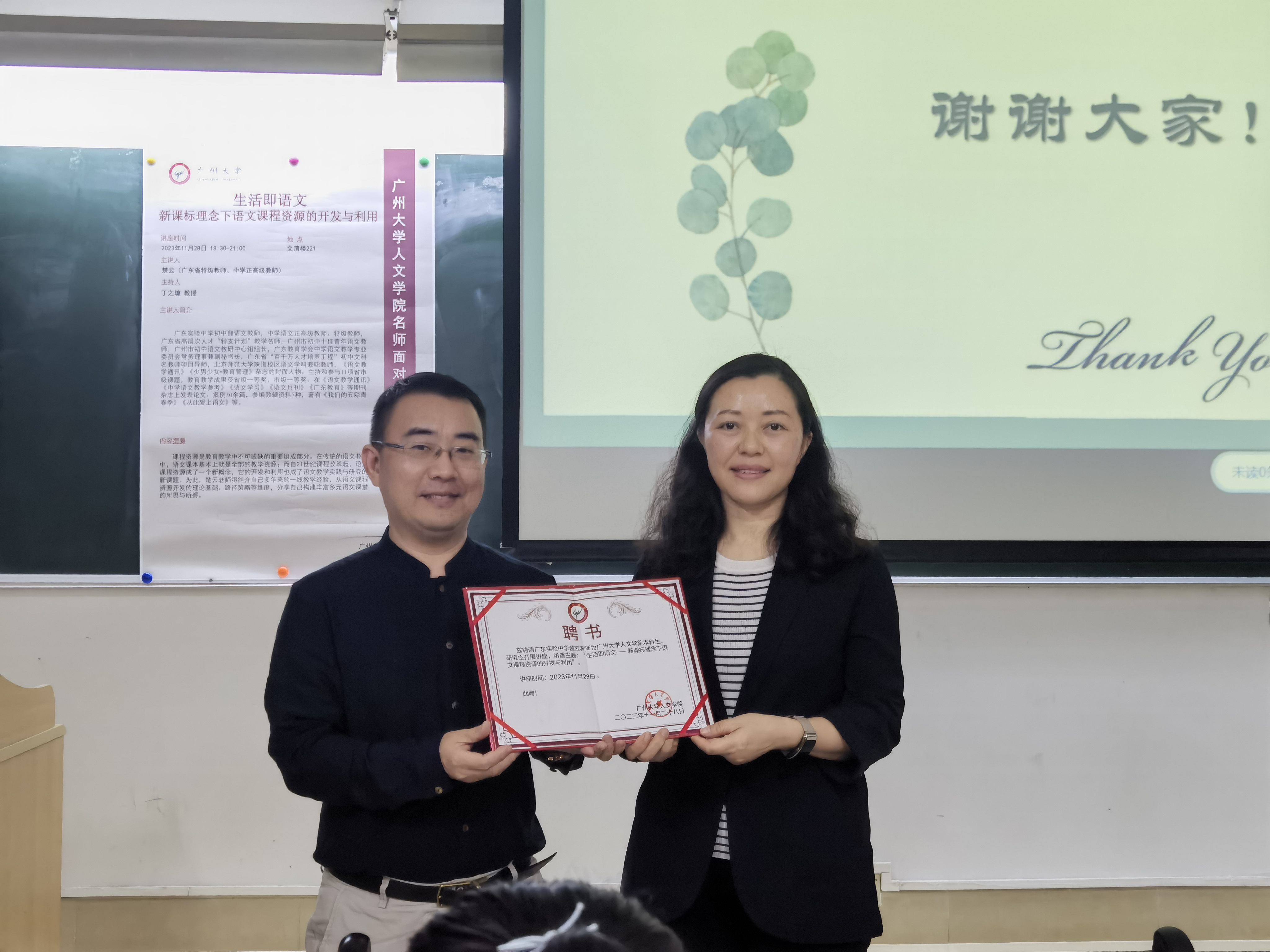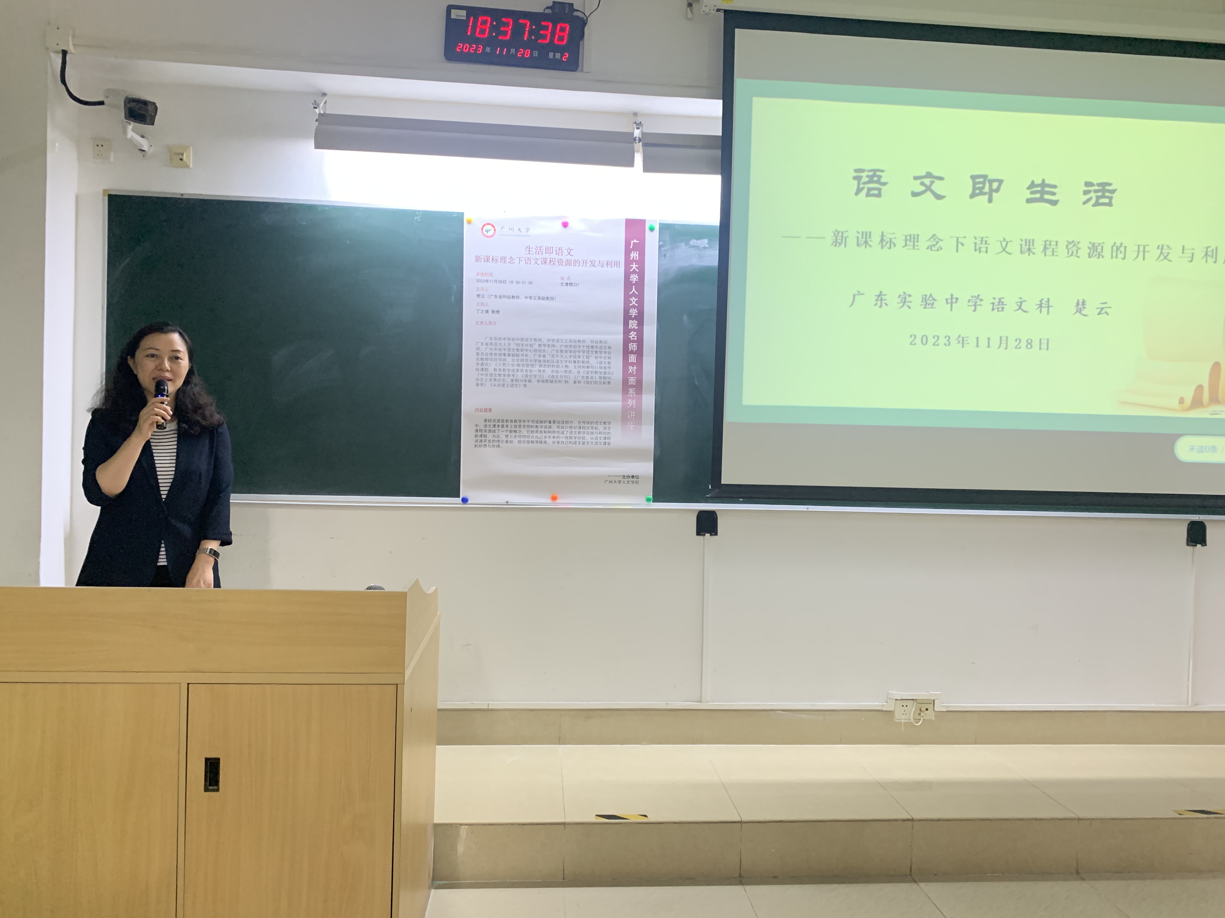 文清楼221室举行。本次讲座主题为“语文即生活:新课标理念下语文课程资源的开发与利用”,主讲人是广东实验中学特级教师、正高级教师、广东教育学会中学语文教学专业委员会常务理事兼副秘书长楚云老师。讲座由吃瓜网