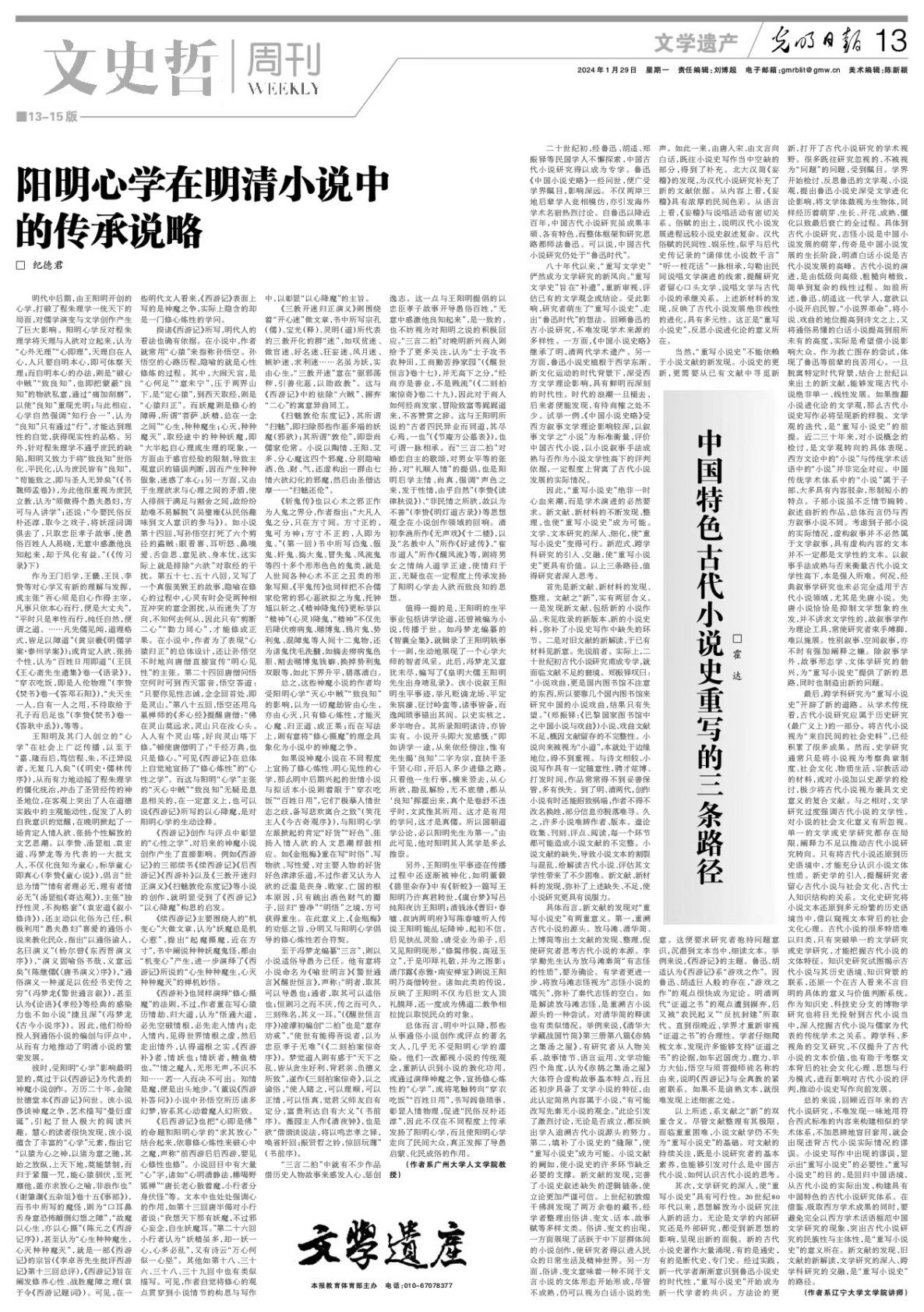 纪德君教授在《光明日报》(2024年01月29日 )《文学遗产》专刊发表长篇学术文章《阳明心学在明清小说中的传承说略》,对阳明心学对明清小说的影响进行了深入论说。