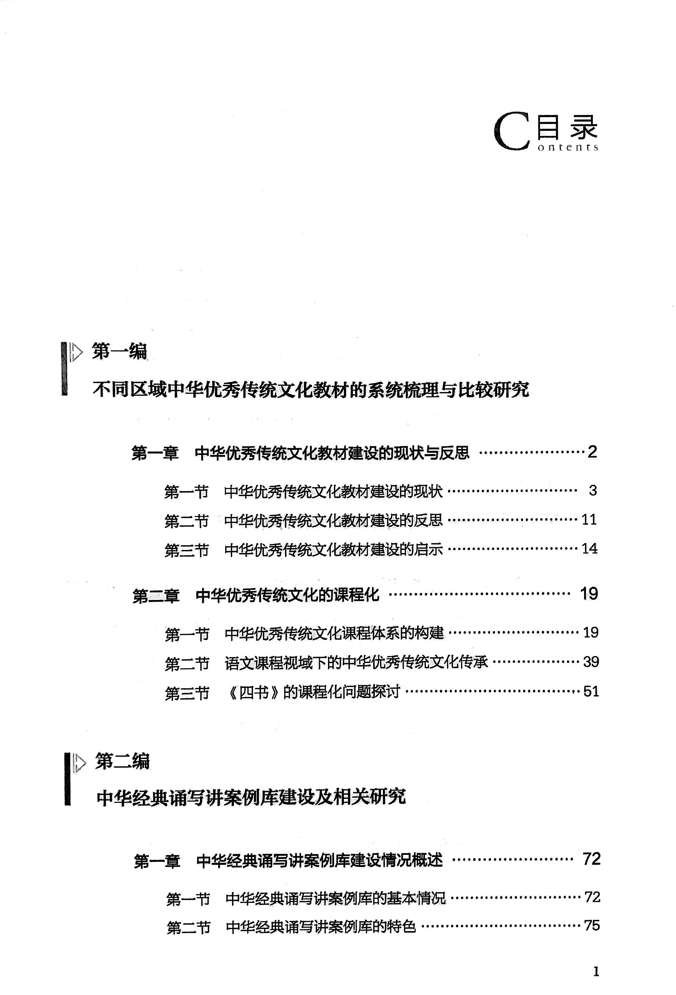 《研究》四编的大致内容与主要作者情况。第一编是“不同区域中华优秀传统文化教材的系统梳理与比较研究”,两章共六节,主要进行中华优秀传统文化教材建设的现状描述与反思,同时探讨中华优秀传统文化的课程化的相关思路与个案实践问题,主要作者是温小军、祝安顺。第二编是“中华经典诵写讲案例库建设及其相关研究”,三章共十节,主要是对本课题承担的中华经典诵写讲案例库建设进行介绍并对相关的实践活动进行总结,第三章专门对吟诵教学进行了不同角度的观察和分析,以期对诵写讲活动开展能给予更多的建设性的意见和建议。本编的主要作者是禤健聪、林晖、林丹宜、邓慧淳、黄恺、赵建璇、张俊杰、周志方等。第三编是“不同类型层次经典诵读与经典阅读的实践验证”,三章共七节,其中一章是贯通大中小学分析经典诵读与经典阅读的实践把握,一章是以高校为重点研究其经典诵读与经典阅读的探索实践,一章以中小学为重点报告并分析其经典诵读与经典读的实践。本编的主要作者是纪德君、龙其林。第四编是“基于不同学段传承中华优秀传统文化路径的研究”,两章共九节,分别从“使命”和“路径”两个维度用绕中华优秀传统文化进行了较为充分的分析讨论。本编的主要作者是屈哨兵、于琼、哈迎飞、王毅力等。上述分编列出的相关的作者没有重复,实际上本课题成员好几个是“跨编”研究进行作业的,其中贡献尤为突出的是纪德君、禤健聪、温小军、祝安顺、龙其林几位。学校语委办和丹丹博士在课题申报和课题阶段推进以及课题结项过程中做了大量工作,这些工作不能在成果标注上反映出来,但实际上是极其重要的,马喆、刘惠琼和王国栋、廖宏建、郭杰几位同志在课题研究过程中也做了大量工作。所有这些,都显示出一种可贵的团队协作精神。人民教育出版社顾之川编审、教育部语信司李强同志、广东省教育厅袁本新同志、广州市教育局刘平伦同志在课题启动执行过程中给予了很多指导支持,在此一并致谢。