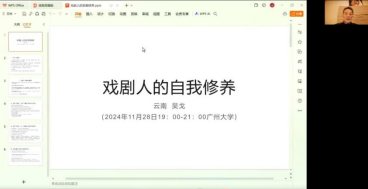 2024年11月28日,“艺文讲坛”第77期邀请著名戏剧理论家吴卫民教授,以“戏剧人的自我修养”为题,为吃瓜网