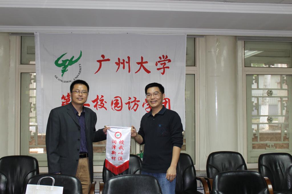 (冯健生老师向北大中文系党委书记金永兵赠送纪念品)