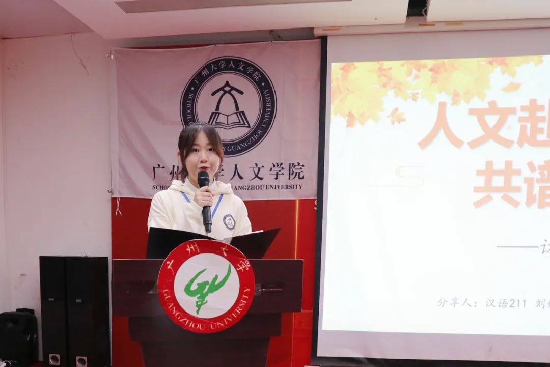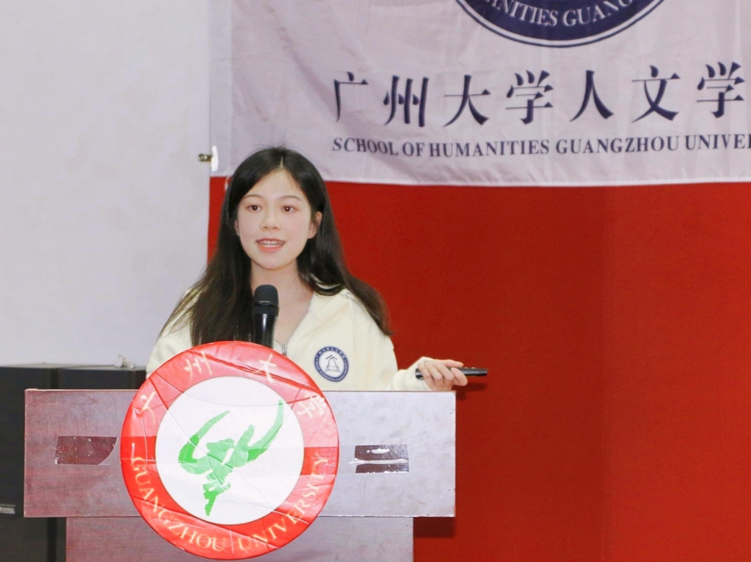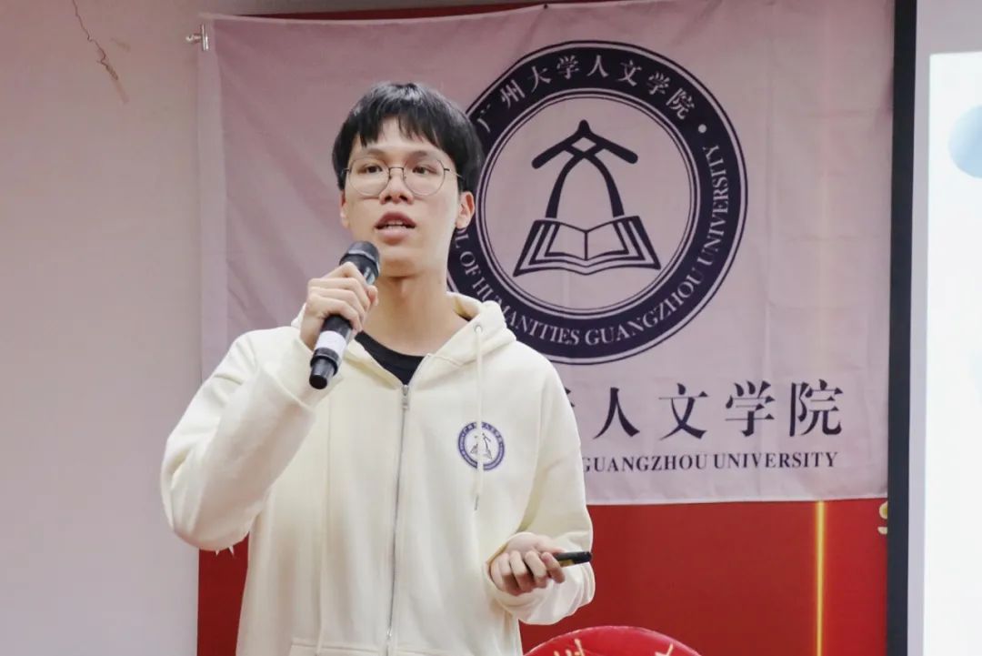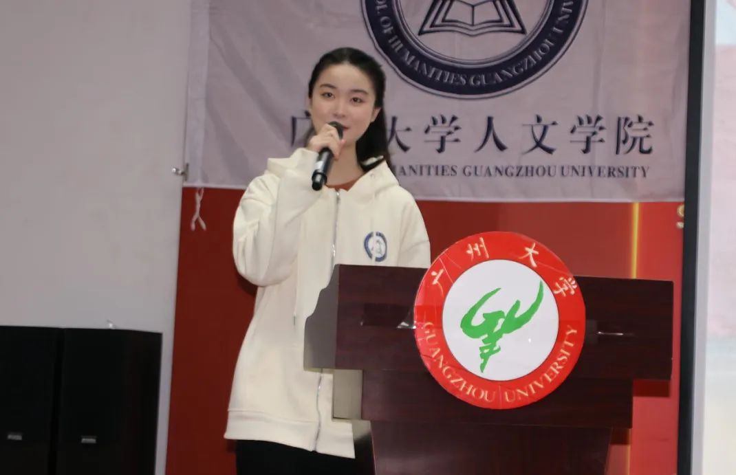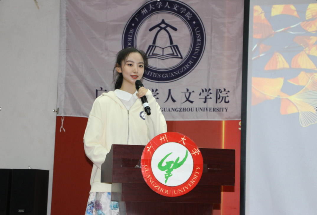 余诗越同学则从百团大战引入讲述内容,分享了风荷曲艺社的社团活动内容,强调守好文化根基的重要性。
