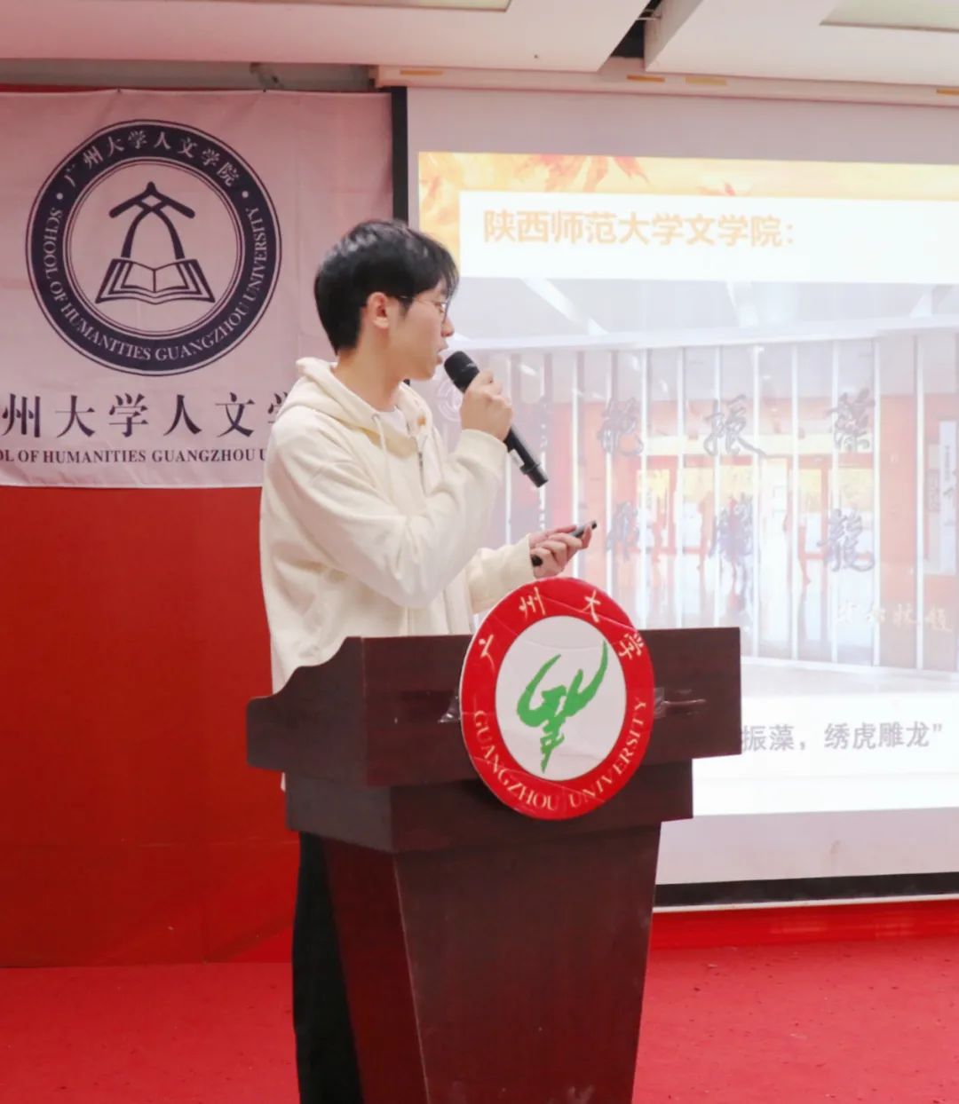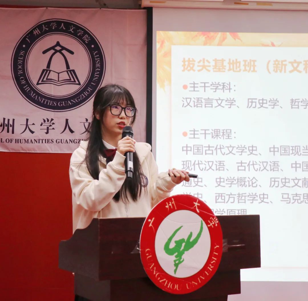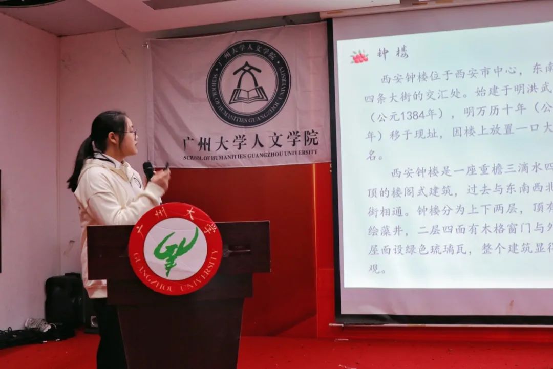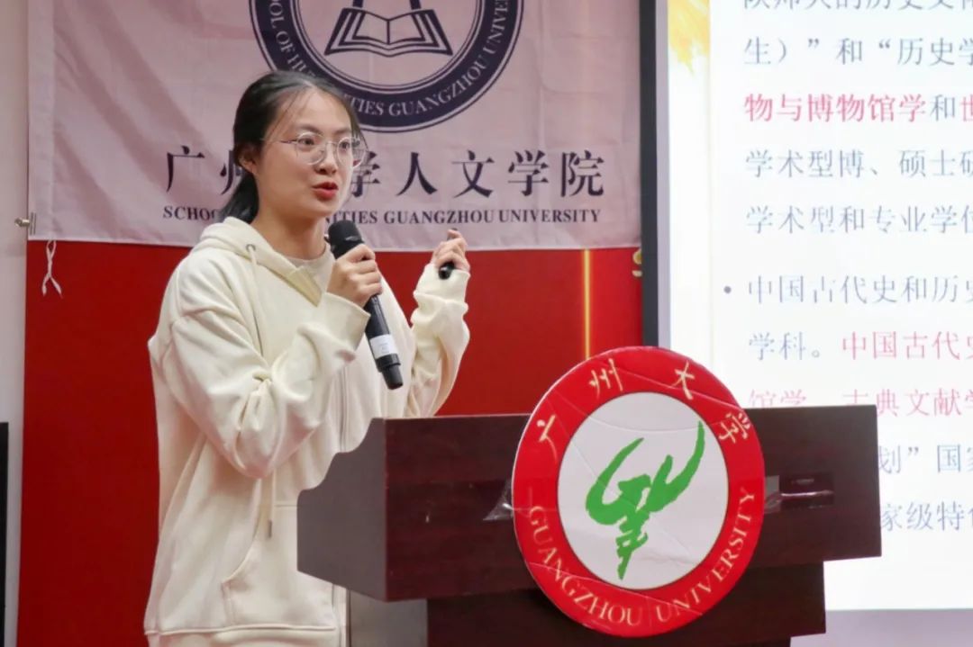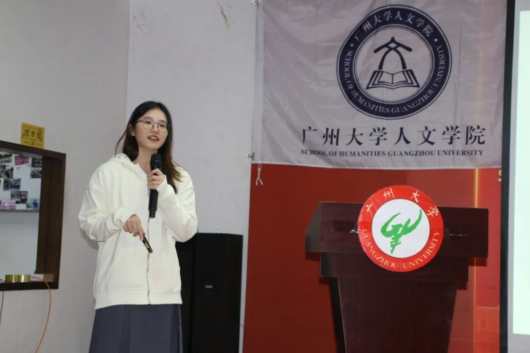 余诗越同学则从百团大战引入讲述内容,分享了风荷曲艺社的社团活动内容,强调守好文化根基的重要性。