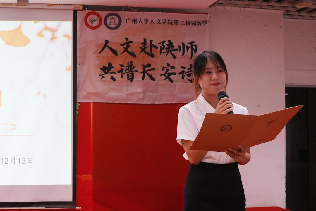 丰富的学生社团活动也是陕西师范大学的特色之一,访学团成员钟悦引领同学们走进陕师大的秦风诗社,共赏《沁园春·雪》的吟诵片段。