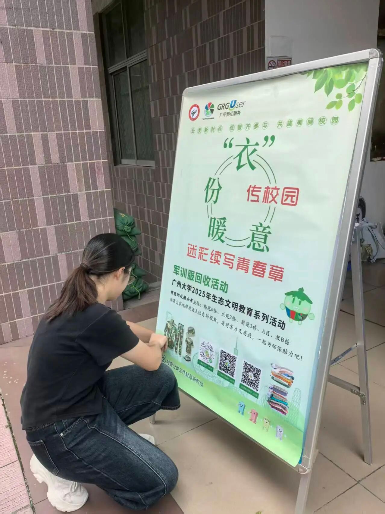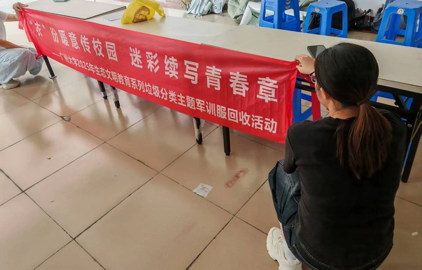 学生会权益服务部于桂花岗校区五号楼一楼架空层开展了军训服回收活动在广大学子的积极参与下,活动圆满结束每一套军训服,都是青春与善意的交融让我们重温这场绿色行动中的温暖时刻感受迷彩在奉献中进发出的生命力。