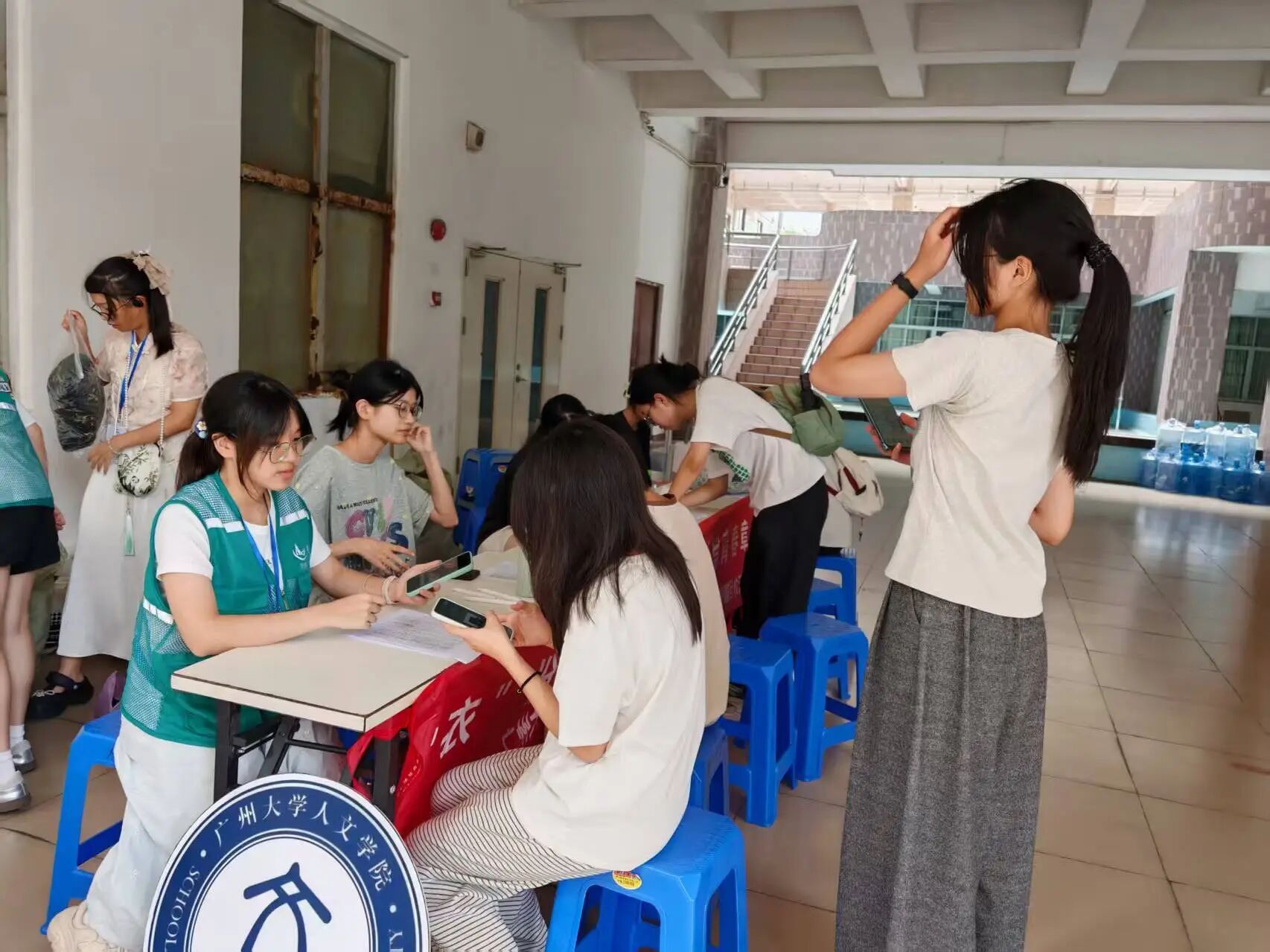 活动进行时,同学们自觉排队,有序捐赠军训服,将一份份爱心凝聚成温暖的力量。与此同时,工作人员有条不紊地开展收集、登记、分类、储存等工作,分工明确配合默契,严谨细致地完成每一项任务,让大家的爱心通过这些军训服,切实传递到有需要的人的手中。