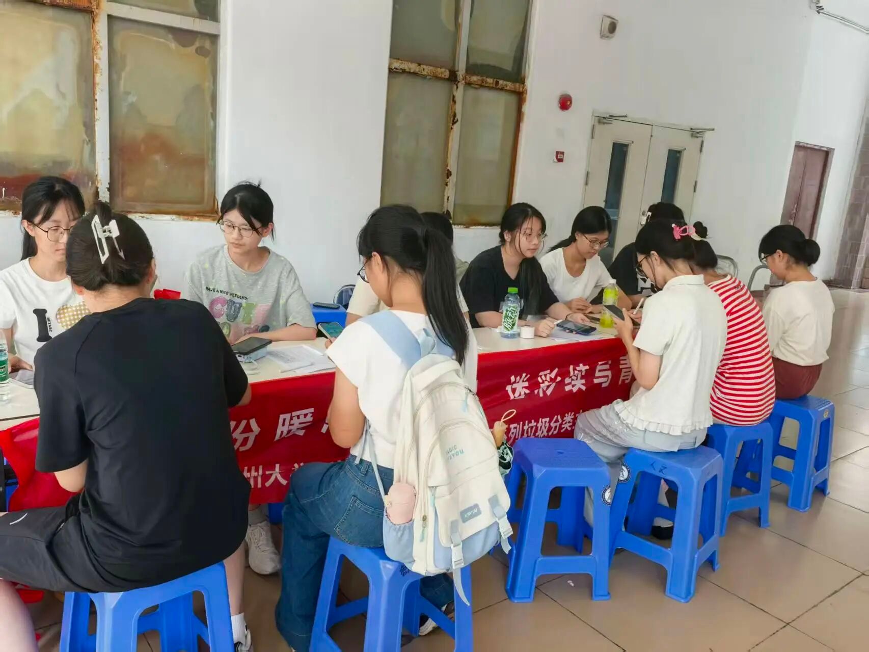 线上发布宣传推文,线下张贴海报,为同学们提供详细指引。进行现场布置时,工作人员与志愿者们一同搭帐篷、摆桌椅、悬挂指引牌,细致专注地搭建起绿色回收的爱心驿站,用行动为军训服回收活动暖心开场。