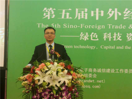 (王浩兵校友在第五届中外经贸会议上介绍他们的创业项目)