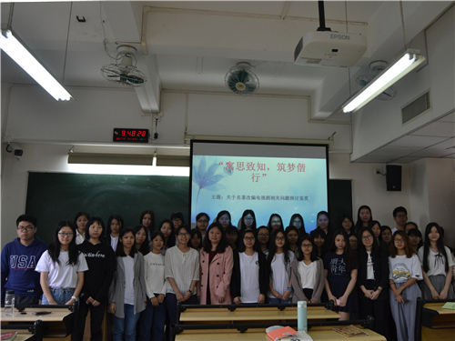 本次活动以“鉴赏与探讨有关名著改编电视剧的相关问题”为主题,分为两大部分,第一部分为“关于对名著原著与改编电视剧的相关问题讨论”,第二部分为“关于新版翻拍与旧版电视剧的相关问题讨论”。活动期间,主持人还播放了87版《红楼梦》电视剧的“黛玉葬花”、“憨湘云醉卧芍药裀”等经典片段,让同学们赏析与评价。整场活动节奏轻快,师生交流十分顺畅。