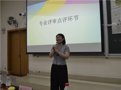 大赛接近尾声,出席大赛的三位老师分别上台讲话。刘军军老师表示,我们学院要重视各团支部的建设工作,开展更多能团结同学的、富有学术性的、趣味性的活动。韩宝玉老师对各班级的作品都给予了充分的鼓励和肯定,同时为作品的创意表达方面给出了专业的建议和看法。陈楚敏老师则对代表班级演讲的同学提出了一些建议,如穿班服、戴团章、提高自己的演讲能力等,这些都是可以让班级作品在展示环节中加分的小细节。