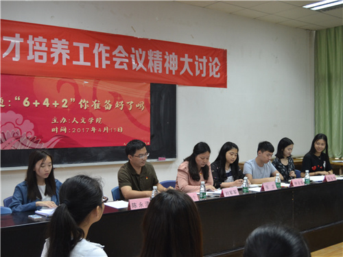 接着,同学们纷纷发言,从不同角度讲述了自己对“6+4+2”这一培养模式的思考。有的同学提到,作为主要班干,可以在班内开展有自己班级特色的主题活动,或者就专业课老师提出的一些问题展开讨论,在形式上不拘泥于课室,应积极发挥同学们的主观能动性;还有的同学提到,在公共课和专业课的学习上,要采取不同的方式方法消化知识,提高效率;研究生班的班长则从研究生的特殊性谈到应该在加强专业学习的基础上,多参与课外活动,发展自己的体育和艺术爱好,努力做到全面发展;更有同学对于图书馆的开放时间、宿舍区五室一站的活动开展等问题提出了很好的建议,充分体现了同学们的主人翁意识。