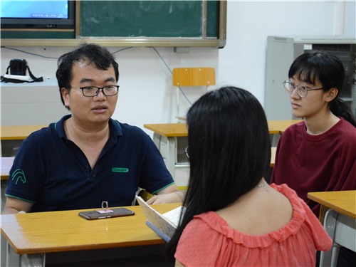 第一次与师兄所在的吕田中学合作举办夏令营,我们正好借此机会,对浩明师兄进行一个采访。校园安静地坐落在吕田镇的青山绿水中,暑期放假校园少了学生的喧哗一派静寂,而师兄还在办公室忙碌着。听闻我们到达吕田镇,他放下手头工作,携学生干部到车站热情迎接,亲切地让我们唤他作师兄。朴实的着装,亲和的态度,温暖的广大情,构成了我们对师兄的第一印象。