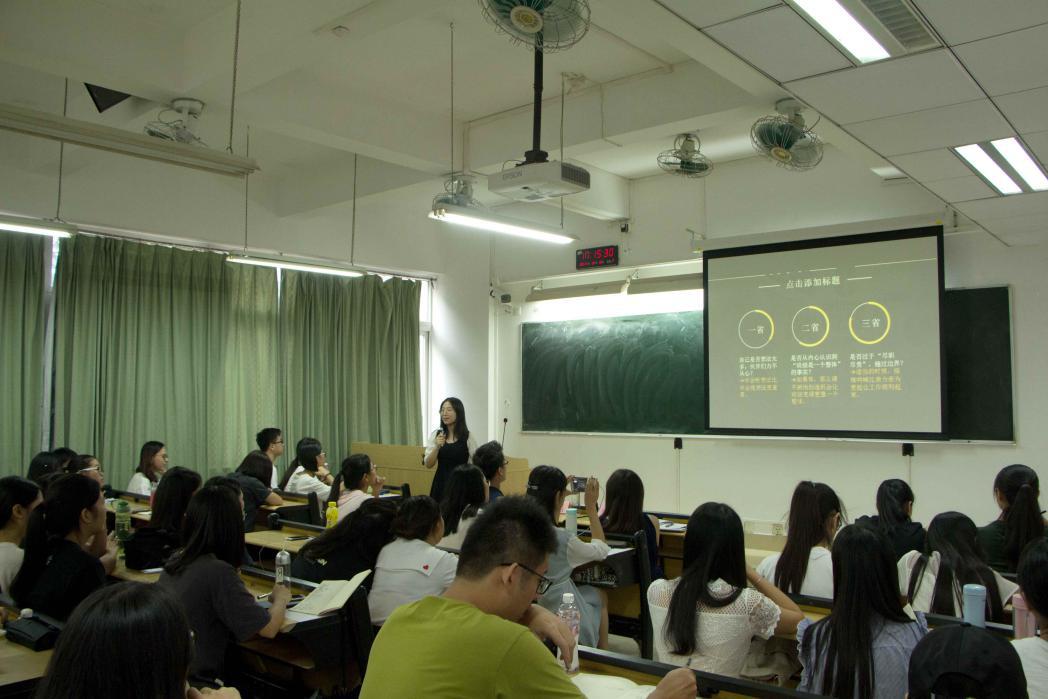 廖秋玲,是华南师范大学2015级汉语言文学(师范)的在读生。两年当班干部的经历,让她对班级建设有了自己特有的想法。在她的演讲中,我们看到了与我们不一样的班级架构方式、充满特色的班团活动,让我们耳目一新。