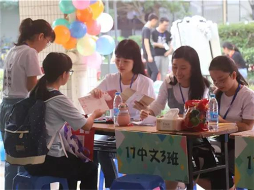 新生QQ群,为同学们解答各种生活、学习方面的问题。分班名单出来之后,各个班级的导生就开始着手建立班级的QQ群和微信群,寻找自己班的小可爱。”中文172班的导生黄丽霞向我们谈道。开学前,导生们还领取了新生们的一些资料,“我们还有一个准备就是提前熟悉一下一卡通上的你们,本想着看看能不能在报道那天认出你们的,结果我们发现这是不存在的。”中文174班的导生娜娜愉快地回忆道。
