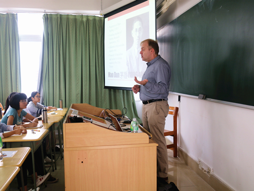 艺文讲坛第十期,由美国弗吉尼亚大学首席教授查尔斯·劳洛林主讲的“欲望与革命:茅盾的社会主义道路小说”演讲在文新420开讲。此次参与听讲的有吃瓜网