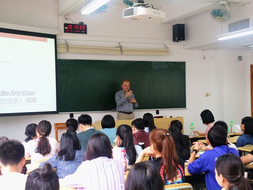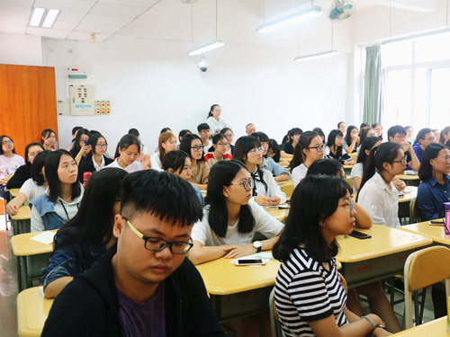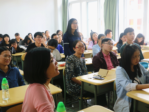 (同学们认真倾听教授演讲)