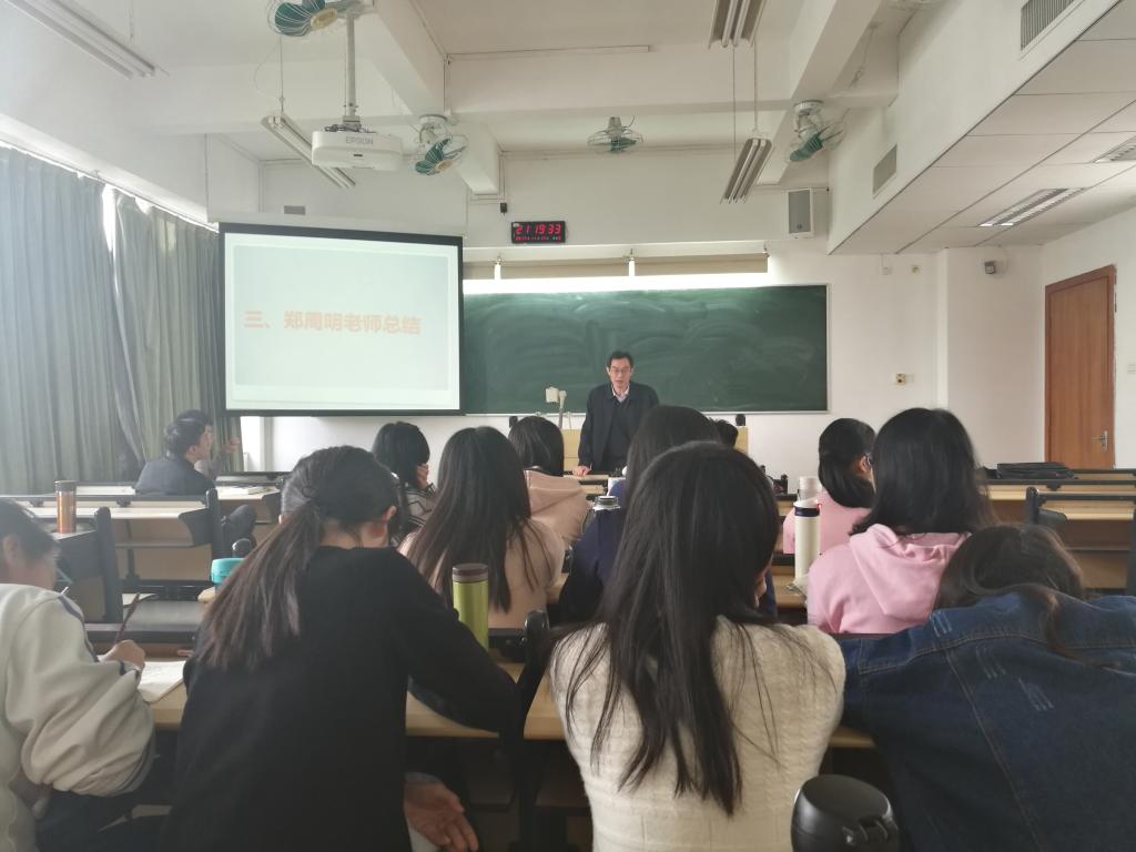 秘书系主任郑周明老师和中文168班同学在文新618成功开展了“秘书之道”学习分享会暨领导、教授联系班级活动。