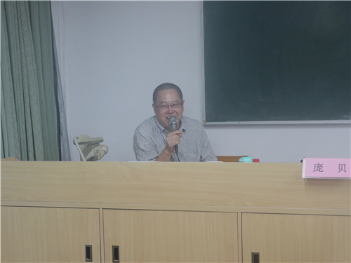 在禤老师对此次讲座作了简单的介绍后,庞老师亲切地开始了与同学们的交流。他从自己创作的角度出发,谈到了当下文学作品商业性的问题。他提出,文学在一定程度上需要商业来推动,但当下的文学作品层出不穷,我们要对当代的一些作品和市场上的诱导保持警惕,要多读一些值得看的书,不要在低俗的作品中浪费生命。除此之外,庞老师还强调要多读国外的文学作品,适当地关注当代作品。