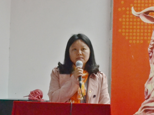 最后,刘军军老师上台总结发言。她先是对获奖的集体和个人表示祝贺,随后用“两个感谢”献给在场的老师与同学们,感谢同学们为学院学生工作所付出的努力,感谢背后默默奉献的老师们。她还鼓励同学们要继续发扬优秀的传统,让优秀成为自己的座右铭。