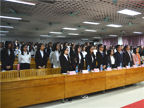 表彰大会在全体到会人员奏唱国歌与校歌中开始,随后一段视频带领着同学们回顾过去一学年学生工作的点点滴滴。