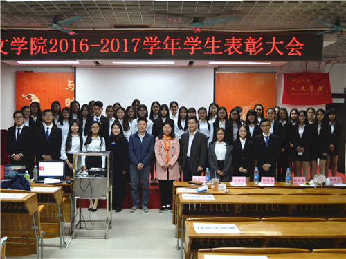 2016-2017学年度学生表彰大会于图书馆讲学厅成功举行。本次表彰大会由团委副书记韩宝玉老师主持,院党委副书记刘军军老师、学工办主任冯健生老师、14级辅导员邱锦泉老师、16级辅导员陈楚敏老师以及获奖代表、各班级代表出席本次表彰大会。