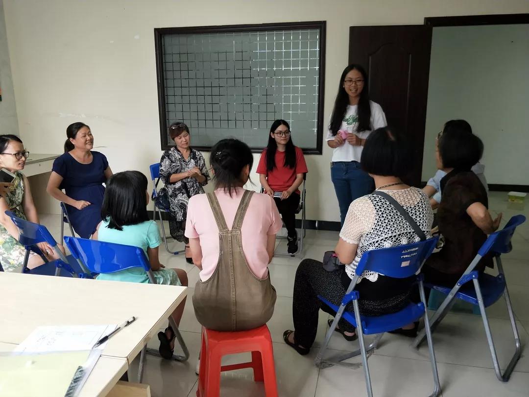 志愿者在上课前向长者自我介绍,与长者沟通;也邀请了长者介绍自己,例如年龄,家乡、兴趣爱好之类,让双方很快就熟络起来,起到了很好的活跃气氛的作用,从而推动了课堂的顺利开展。