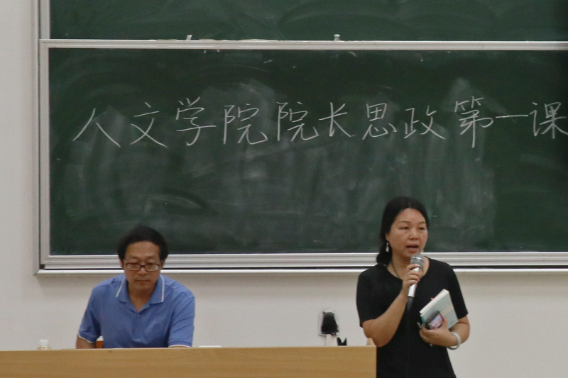 院长纪德君教授于文新408室为19级四个班的同学们带来了精彩深刻的“思政第一课”,院党委副书记刘军军老师参加并主持了此次思政课。一阵热烈的掌声过后,主题为“不忘本来,开辟未来”的“思政第一课”正式开讲。