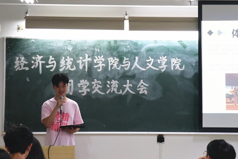 随后,经济与统计学院团委副书记林晓珊老师致开场词。林晓珊老师在讲话中一是强调鉴于学习交流、提质增效的目标,经统学院筹办两院团学工作交流会;二是介绍本院团委学生会组织架构和相关工作;三是表示对两院团学干部深入交流工作、发展友谊充满信心:1、在工作层面,希望两院团学干部们坦诚交流工作,互相介绍和借鉴优秀经验;2、在友谊层面,希望两院团学干部们建立深厚的友谊,在学习和生活中互帮互助互补,提升综合素养。3、在今后工作中,希望两院团学干部集思广益,寻找合作契机,争取联合项目,优势互补,共创佳绩。