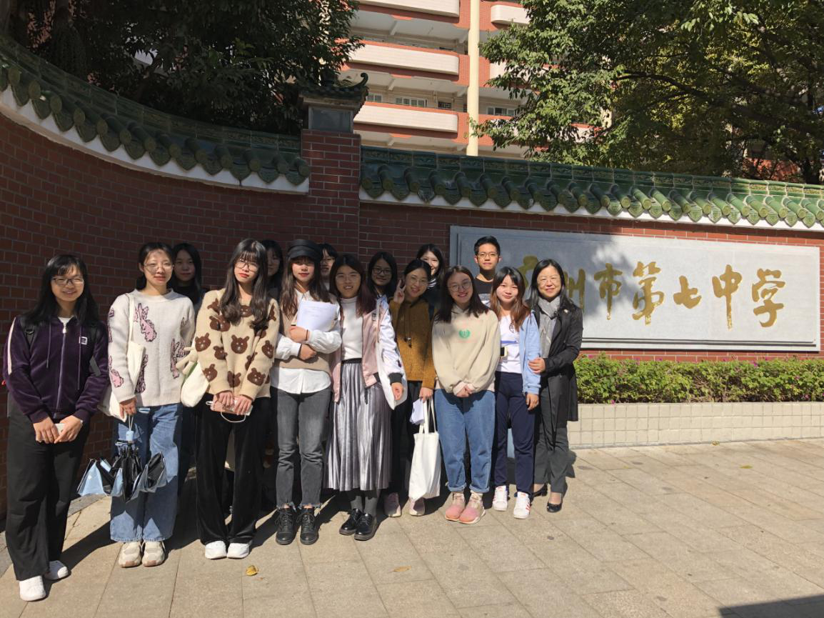 12月3日下午,在课程主讲老师林晖副教授的带领和助教陈楚敏老师的协助下,语文教学实践工作坊第三期学员、学科教学(语文)专业研究生代表、专业见习小组成员一同来到了广州市第七中学开展校外教育见习活动。