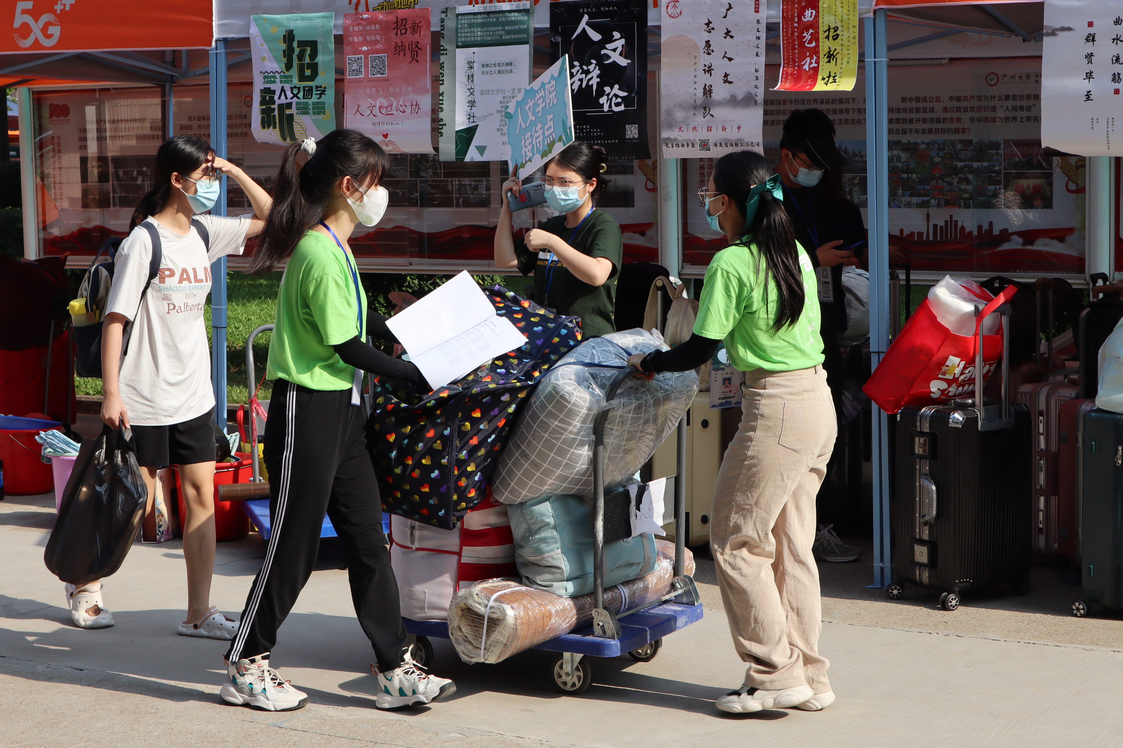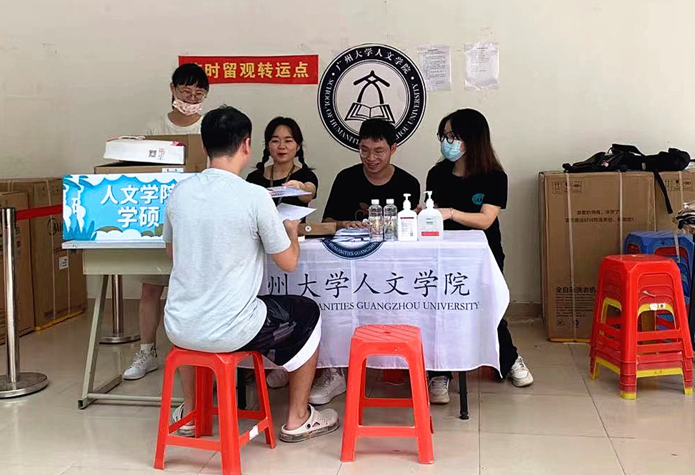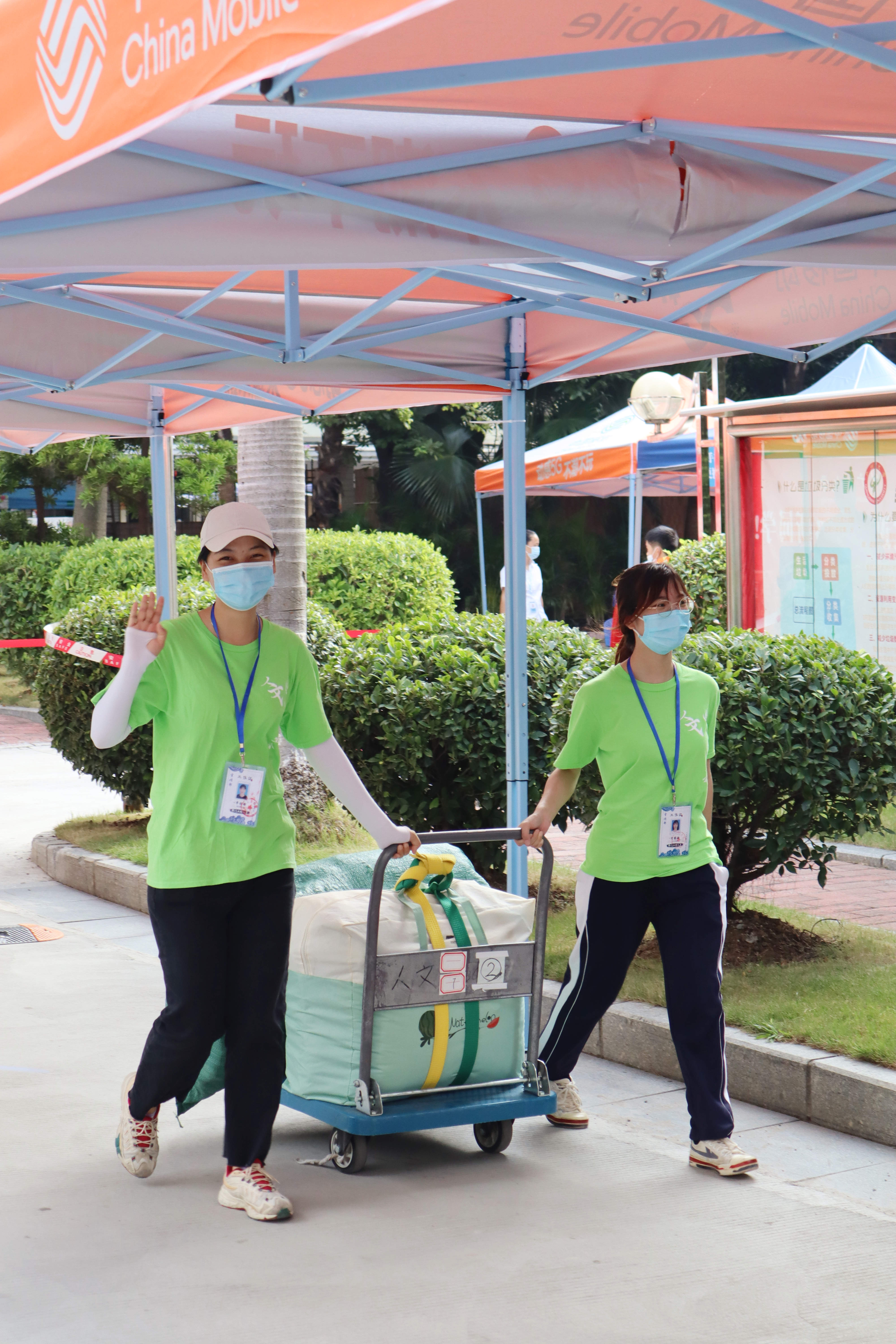 (工作人员热情指引,将行李搬运至宿舍楼下)