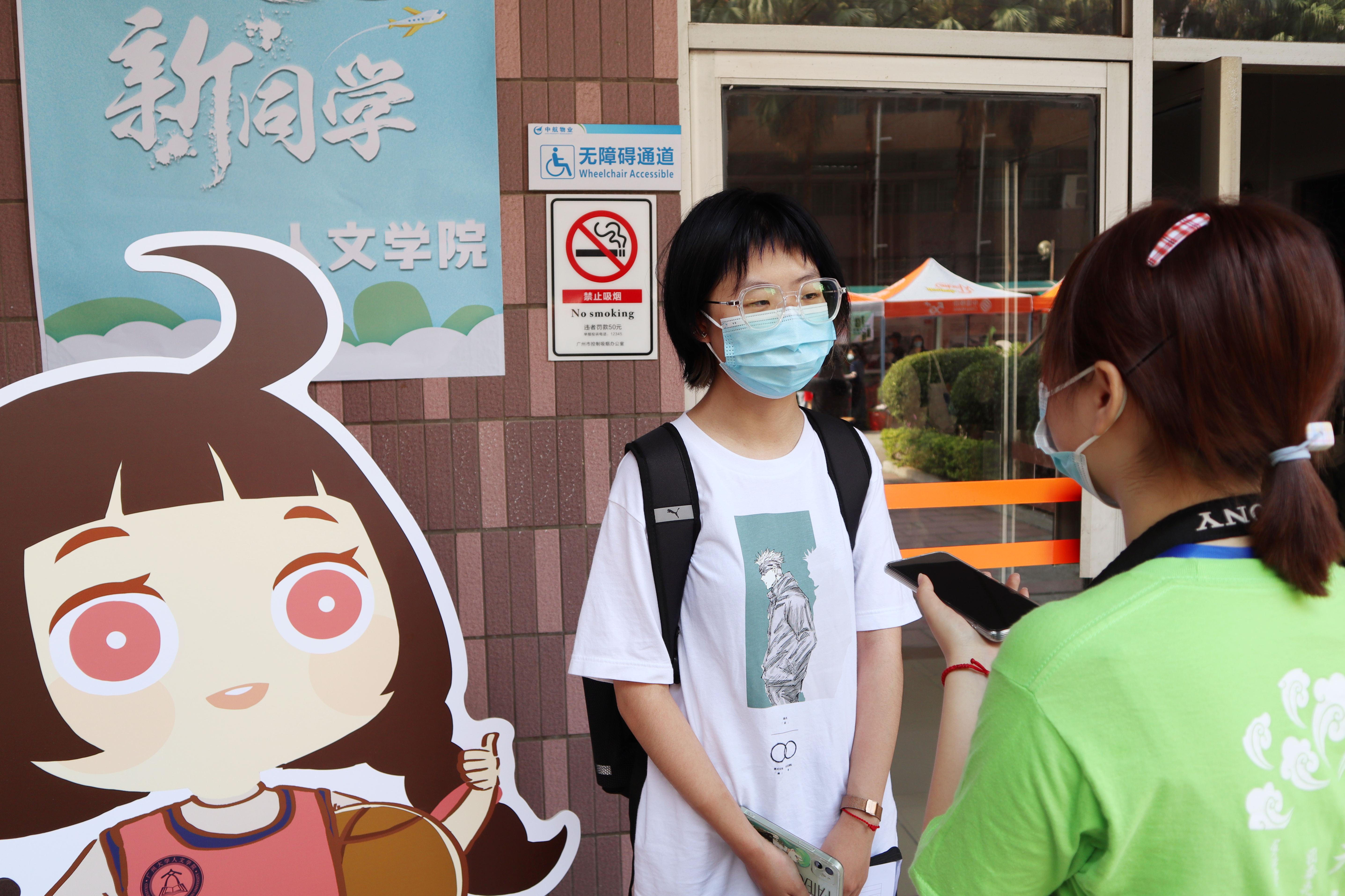 天朗气清,“萌新们”按照防疫规定,陆陆续续抵达校园。