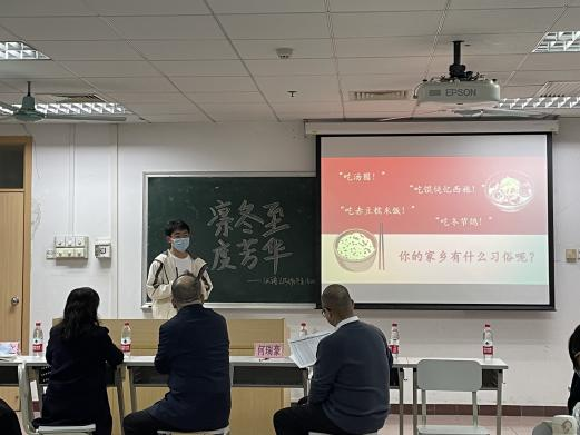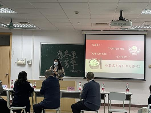 活动伊始,主持人为大家介绍了冬至的基本知识,并通过知识竞赛让大家对冬至有更深入的了解。来自各地的同学也分享了自己家乡的冬至传统习俗,让在场的师生了解到了各个不同地区丰富多样的节日风俗。