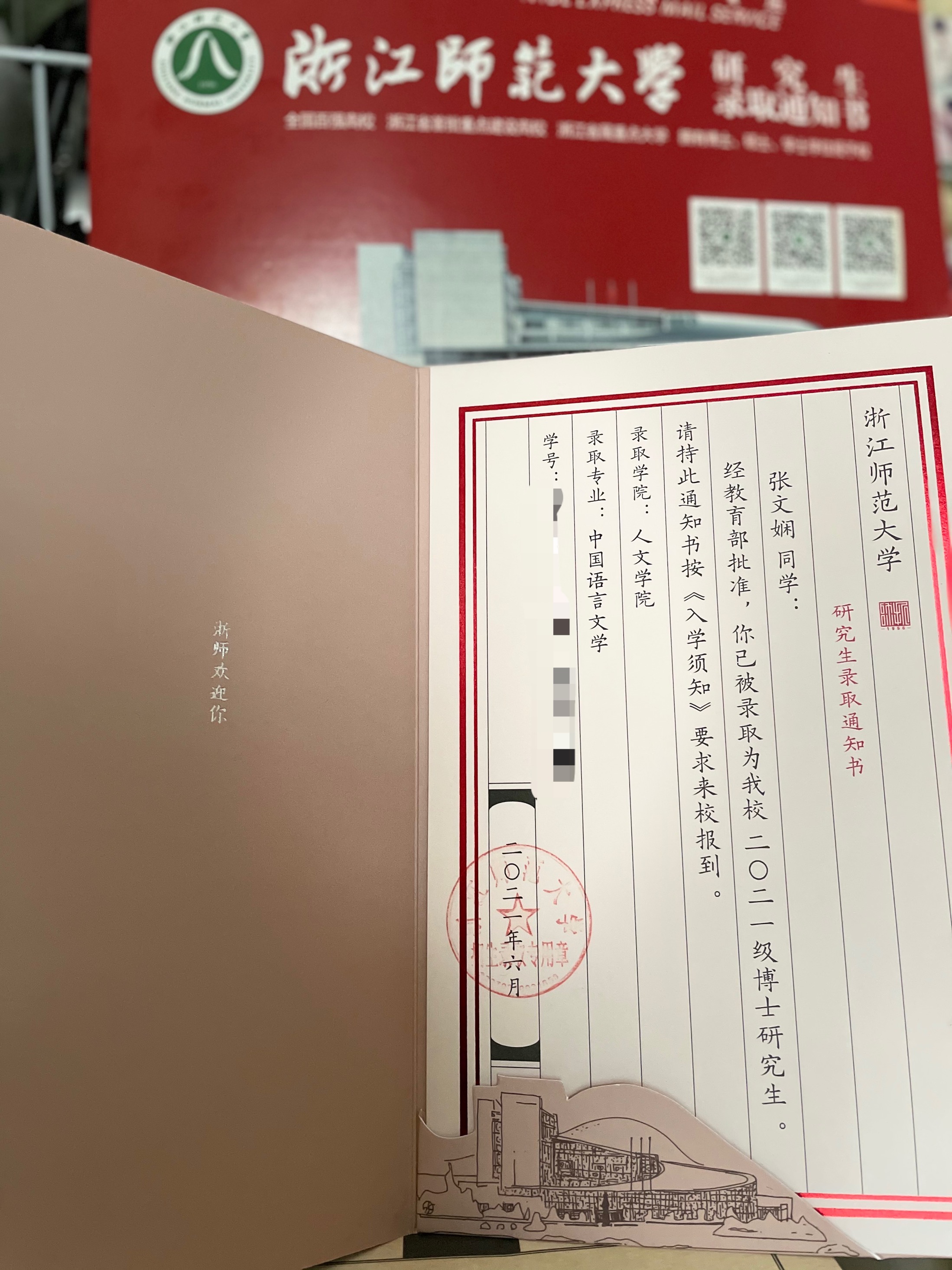 中国语言文学专业录取为2021级博士研究生。