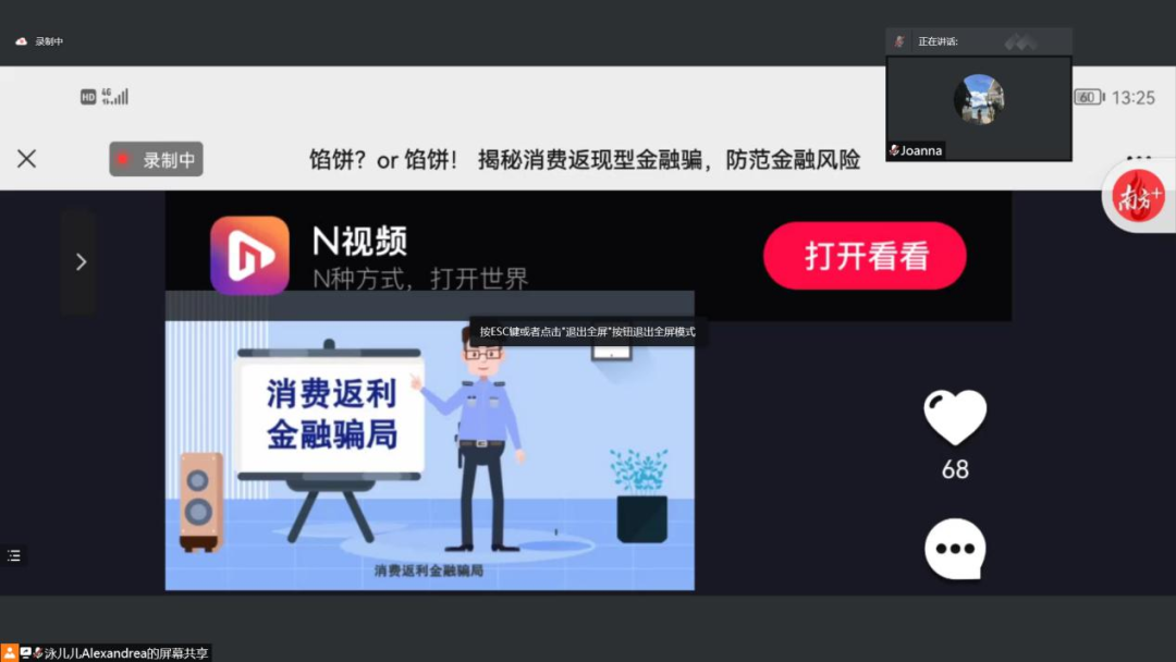 随后,周丽娇老师分析了“屏幕共享”与“高回报投资”两大案例,利用情景剧与视频的方式,层层深入,揭秘骗局四部曲,令同学们印象深刻。