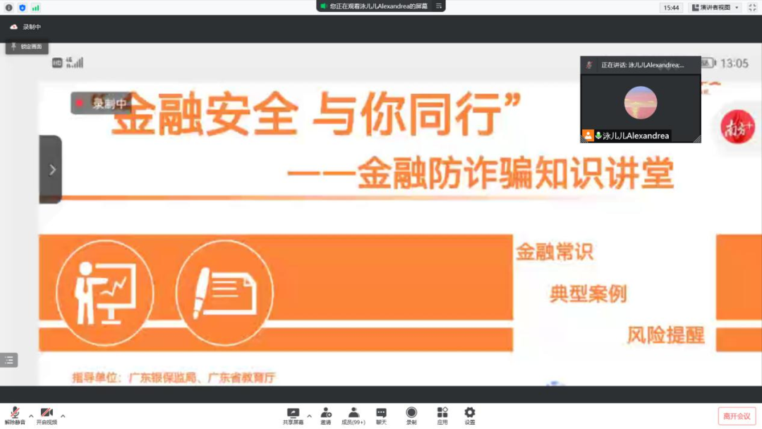 张泳研老师传授了一系列应对诈骗的措施,并结合大学生的心理特征进行分析,提醒同学们要选择恰当的金融服务,依法维护自身权益和注重保护个人信息。
