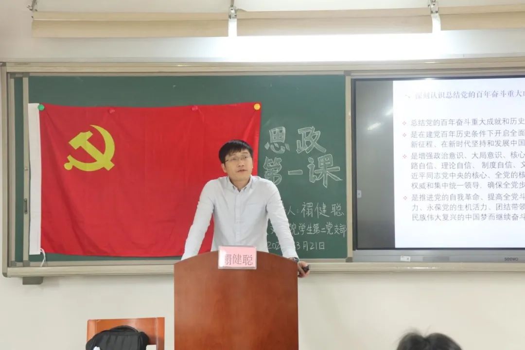 “见出以知入,观往以知来”,禤健聪院长给我们带来了以“学史增信,以文力行”为主题的思政第一课。2021年正值建党一百周年,党的十九届六中全会回顾总结了党的百年成就经验,禤院长与同学们共同,传达会议的重要精神和党的百年奋斗历史经验,让我们都获得了强大的精神力量。