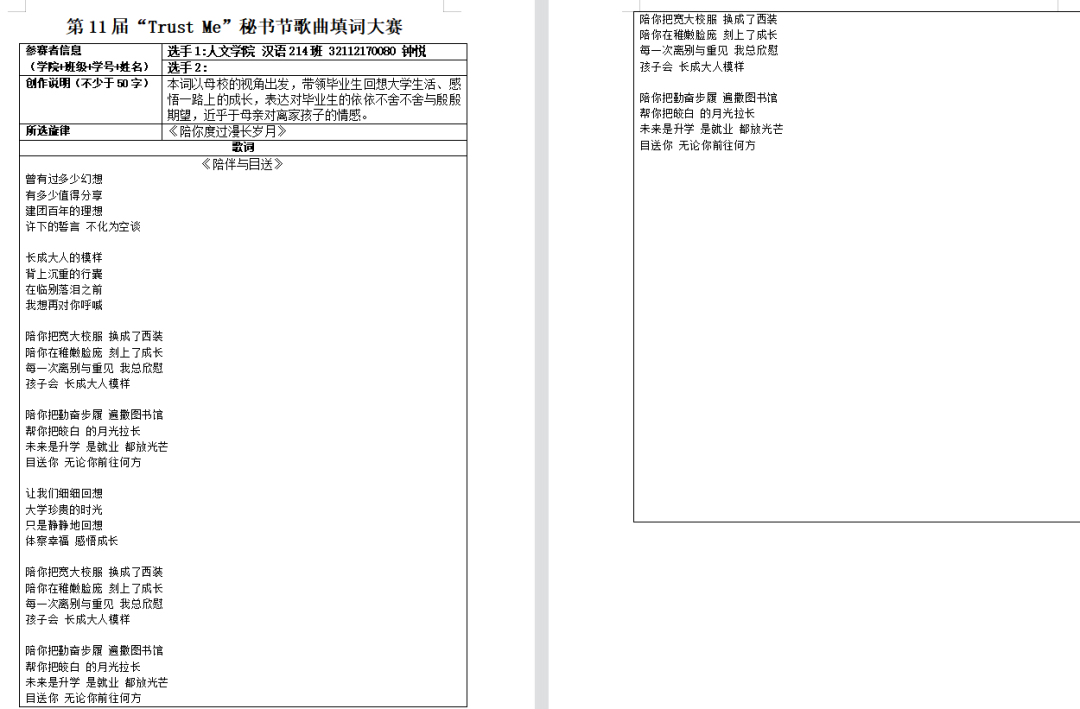 本次秘书节系列活动圆满落下帷幕。感谢全校同学们对本次比赛的支持,感谢各位参赛选手在本次比赛中为我们创作出那么多优秀作品,也感谢各位评委老师的辛勤付出。没有获奖的同学不要灰心,获奖的同学不要骄傲。希望各位同学们都能够在本次比赛后能继续认真学习,不断提升自己的人文素养和创作能力,共同建设更好的明天!