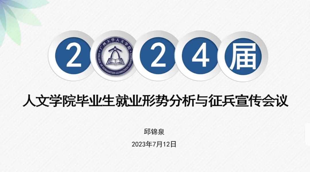 于7月12日晚召开2024届毕业生就业形势分析与征兵宣传会议。学工办主任邱锦泉老师主讲,20级辅导员饶珈瑞老师和2024届本科毕业生参加会议。