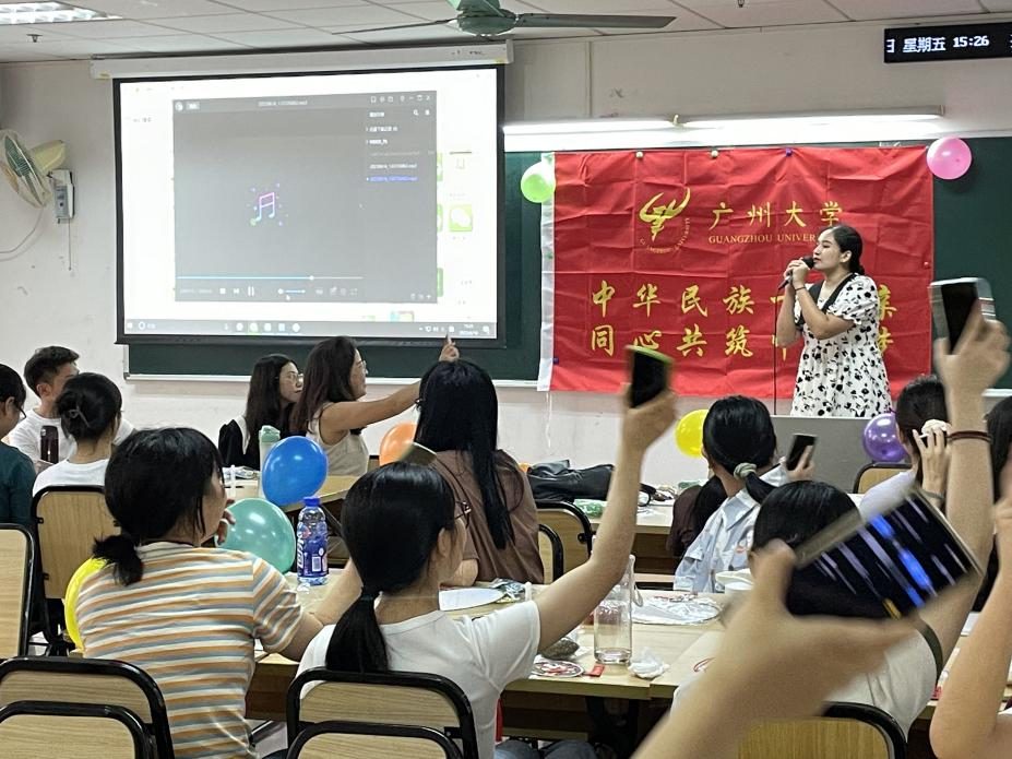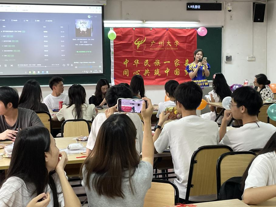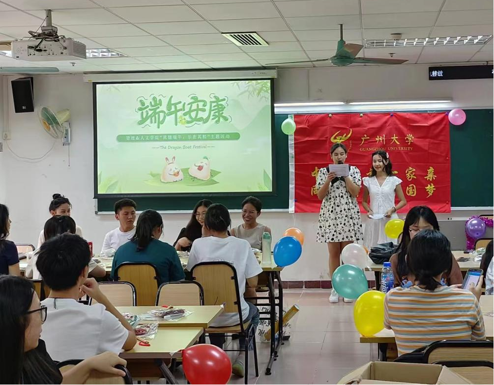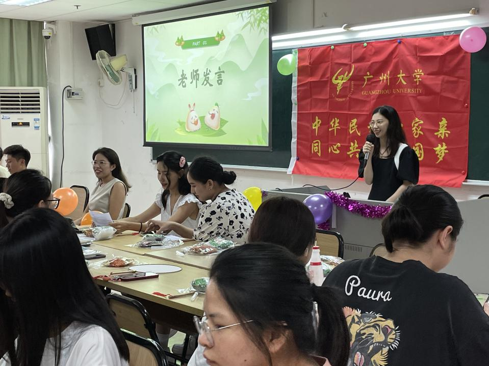 活动伊始,郑田诗老师进行开场发言。她简单讲述了端午节的由来和历史,与各民族同学一起畅聊各自家乡的端午民俗,并与同学们积极探讨了广府文化中“敢为人先、齐心协力”的龙舟文化深刻内涵。