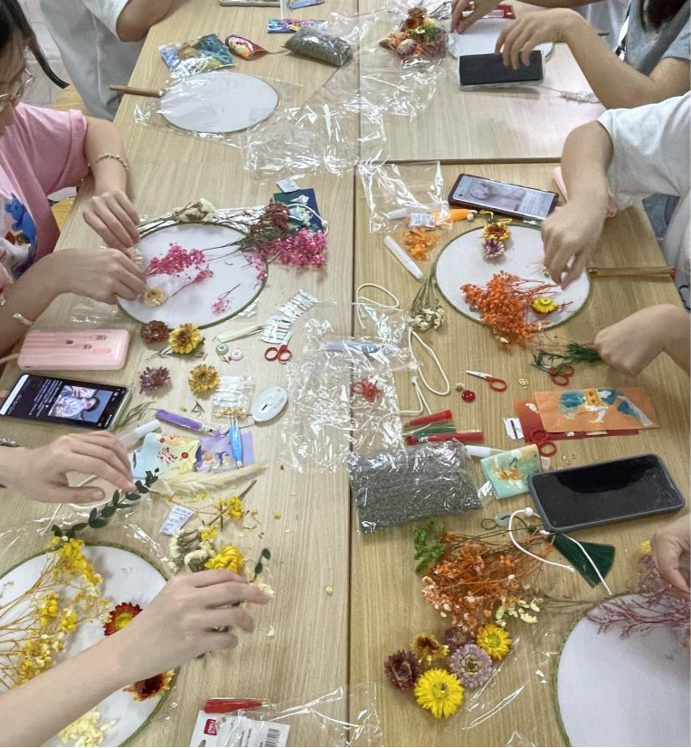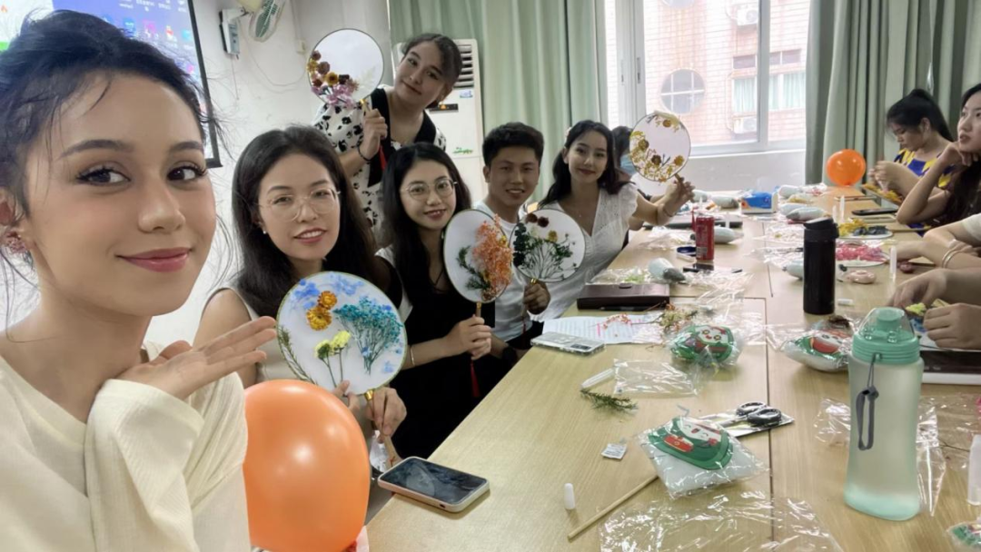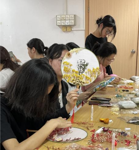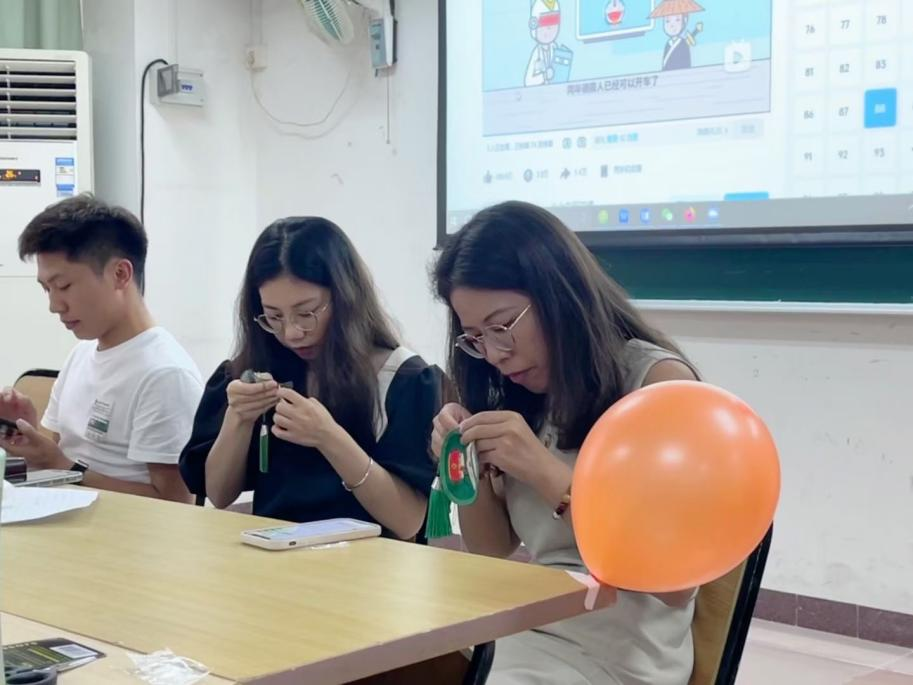 在富有创意和细心严谨的制作下,师生们互相展示了自己制作的“工艺品”,一把把五彩斑斓、各带特色的古代团扇纷纷映入眼帘,现场皆是欢声笑语,其乐融融。