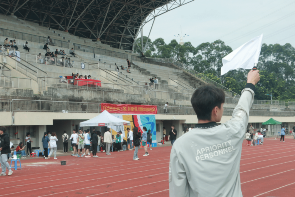 管理学院团委书记梁世健老师致辞,他提到“无体育,不大学。青春、热血、活力和运动才是青年人的模样。希望广大学子可以在大学里挥洒汗水,释放活力!”