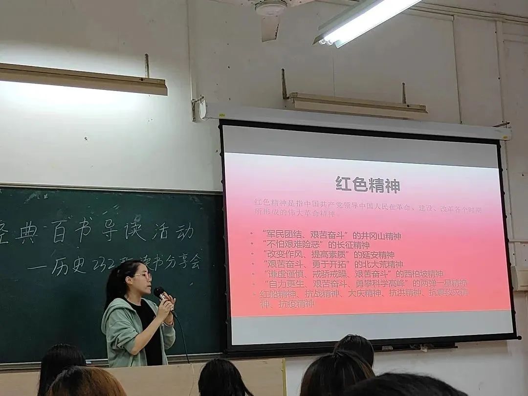 “参加了此次的有关红色精神——回望壮阔历程,叹咏红色精神的读书分享会后,本身对革命先辈们就怀着十分崇敬的精神的我,更是在这一本本同学们介绍的书籍中再次感受到了革命先辈们的伟大,不惧牺牲,抛头颅洒热血,造就我们今天的幸福生活。习近平总书记说过:“一切向前走,都不能忘记走过的路。”革命先辈们的历史功绩我们不能忘怀,更要将他们敢于斗争的精神转化为我们今天奋进新时代的力量,这也是我们开展读书分享会的意义所在之处。”