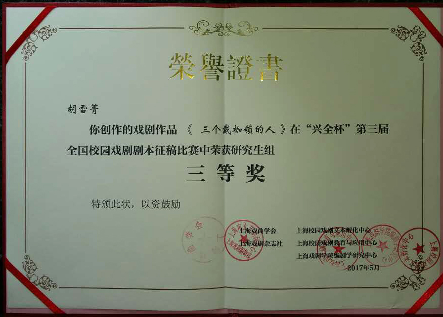 戏剧与影视学专业研究生胡雪菁同学获得研究生组三等奖。