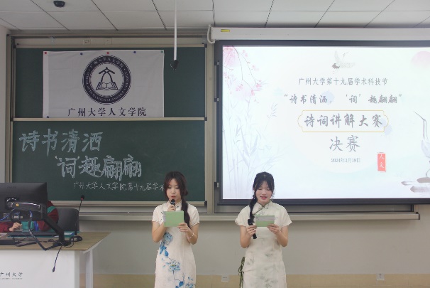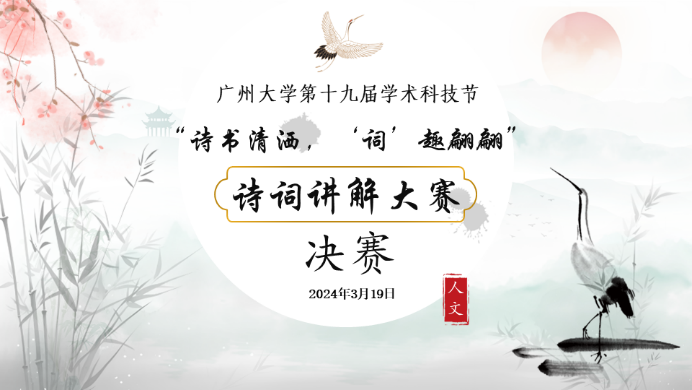 于2024年3月19日下午2点30分在文清119举办了以“诗书清洒,‘词’趣翩翩”为主题的诗词讲解大赛决赛。