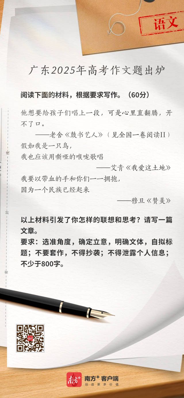 文学系主任赵德波谈作文题:考生应立足于青年本位写出思考》,感谢南方+记者黄子欣的贡献,原文链接://static.nfnews.com/content/202506/07/c11373574.html?specialTopicId=11373377&enterColumnId=0&from=weChatMessage&date=&layer=4